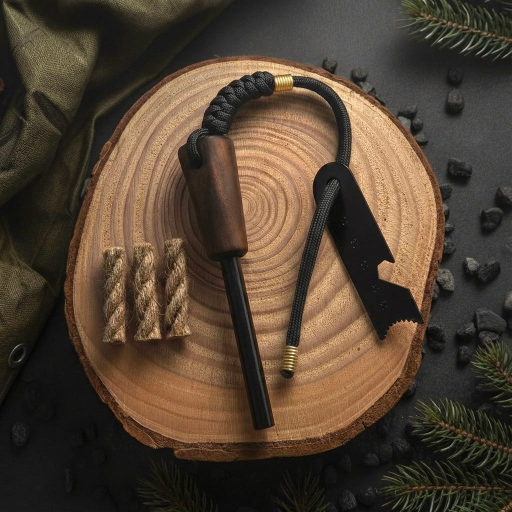 Handcrafted for reliability in the harshest conditions. It pairs a high-yield ferrocerium rod with a sustainable beech wood handle, treated with our signature blend of walnut stain and beeswax, creating a durable tool that ages with character, like fine leather.